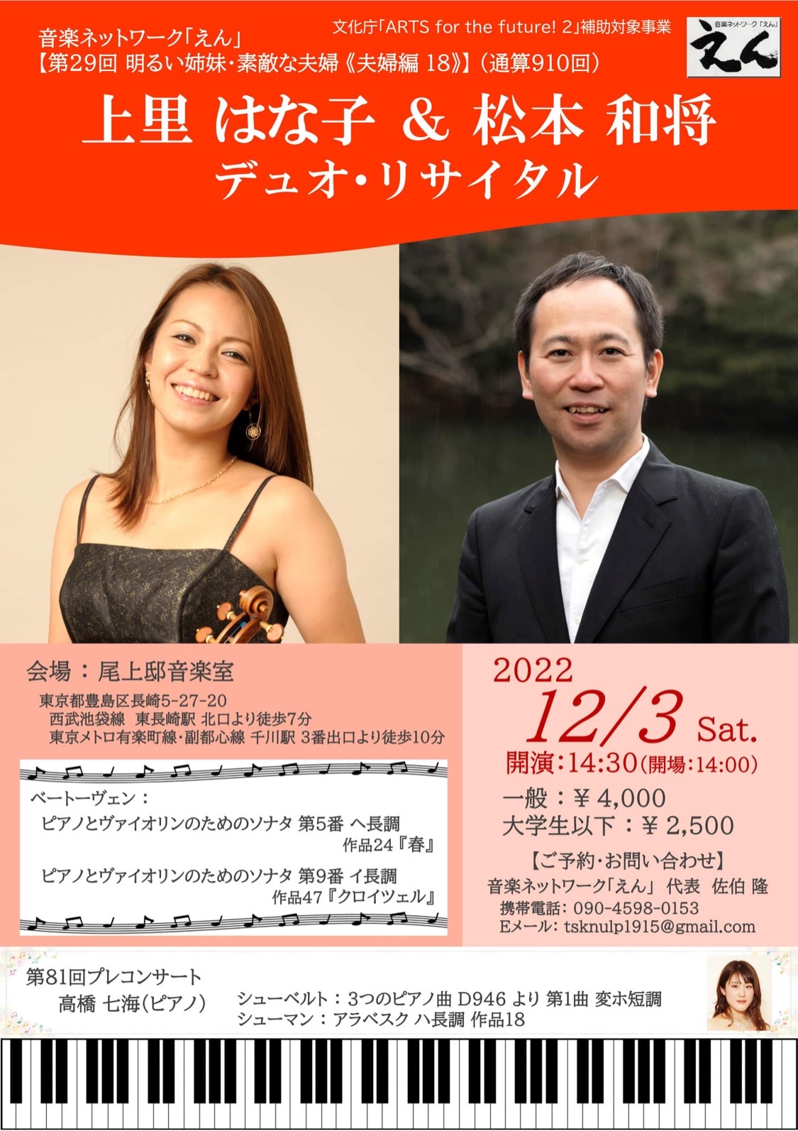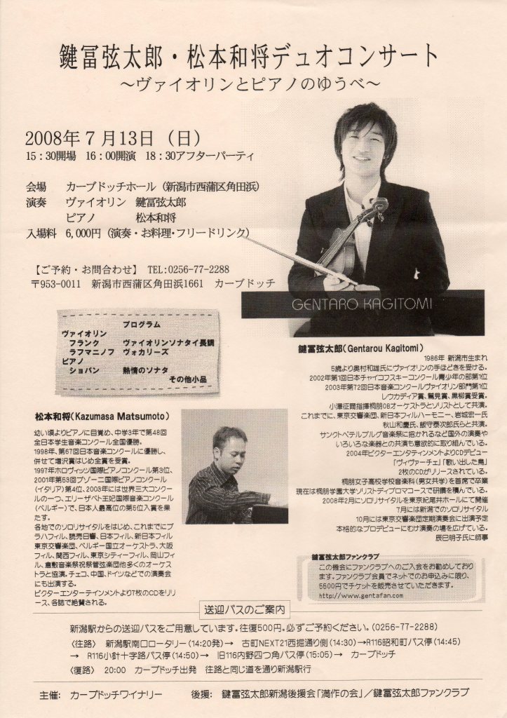 - 鍵冨弦太郎・松本和将 デュオコンサート~ヴァイオリンとピアノのゆうべ~