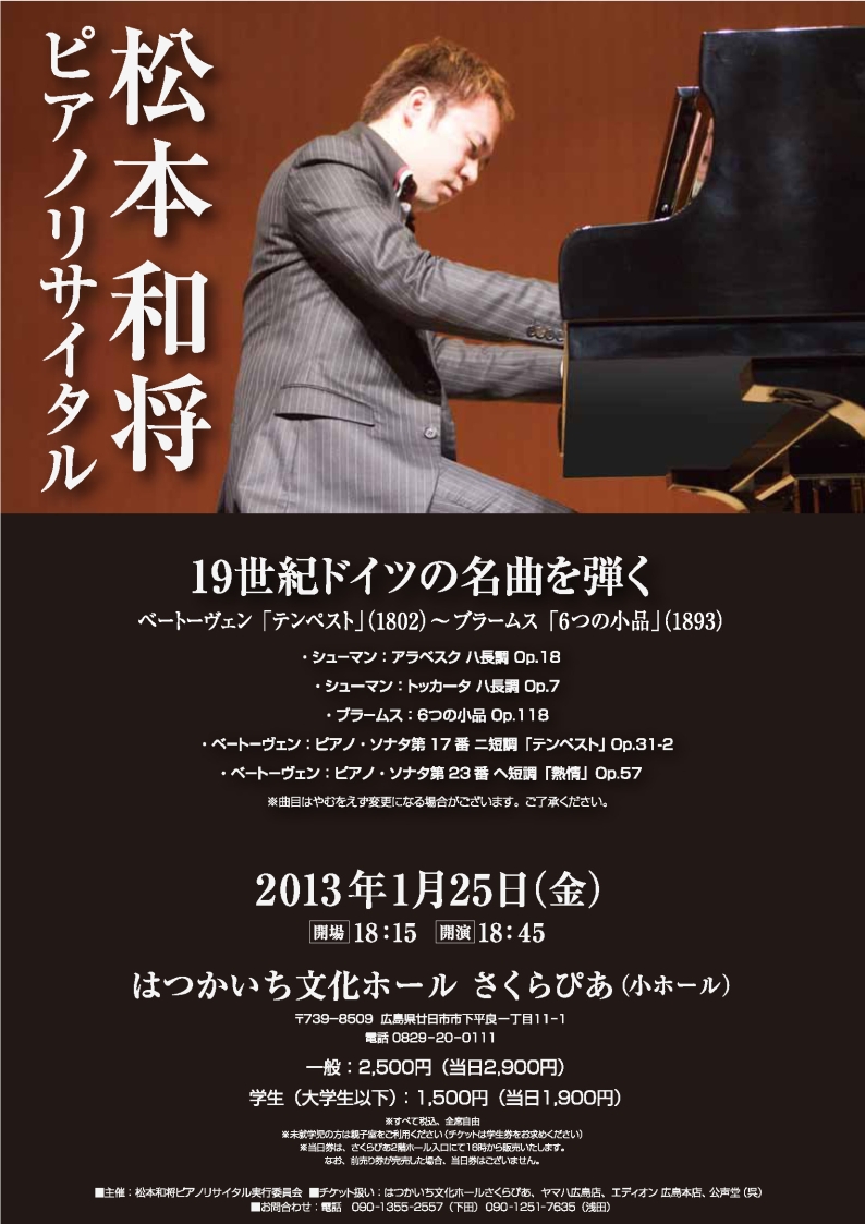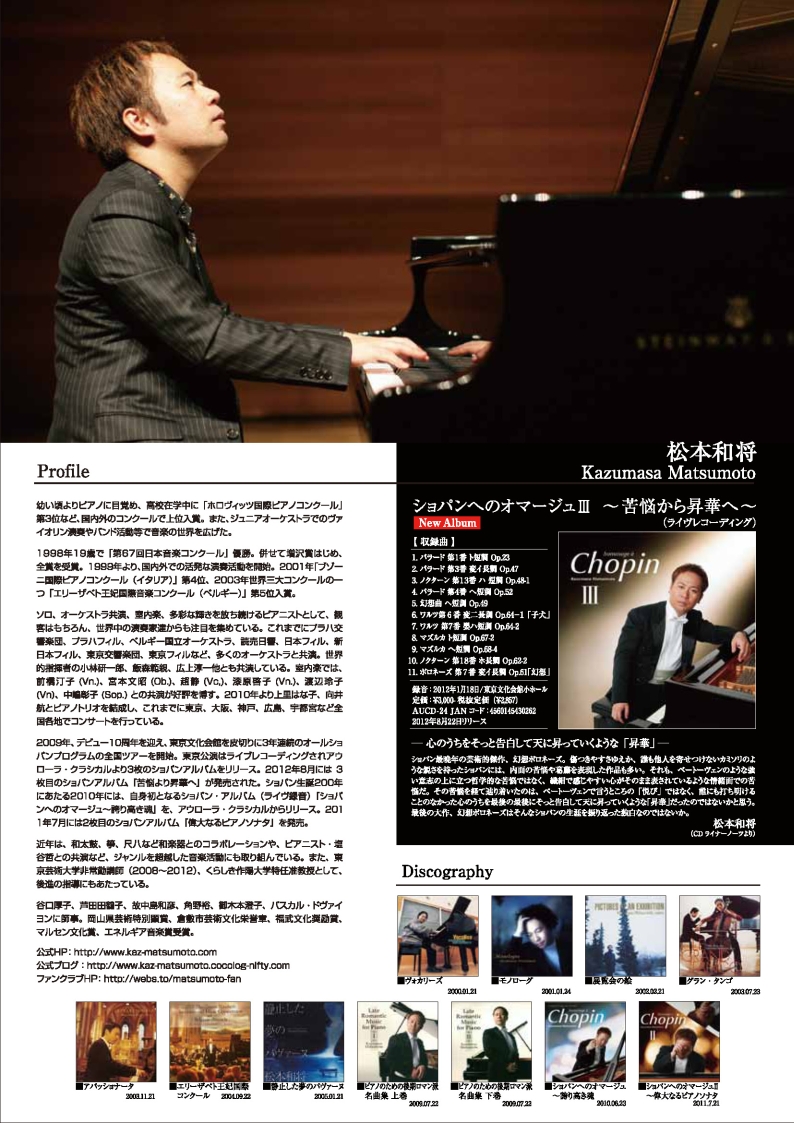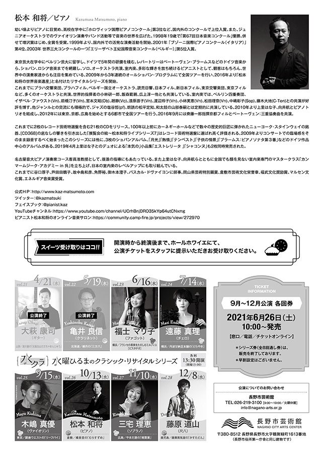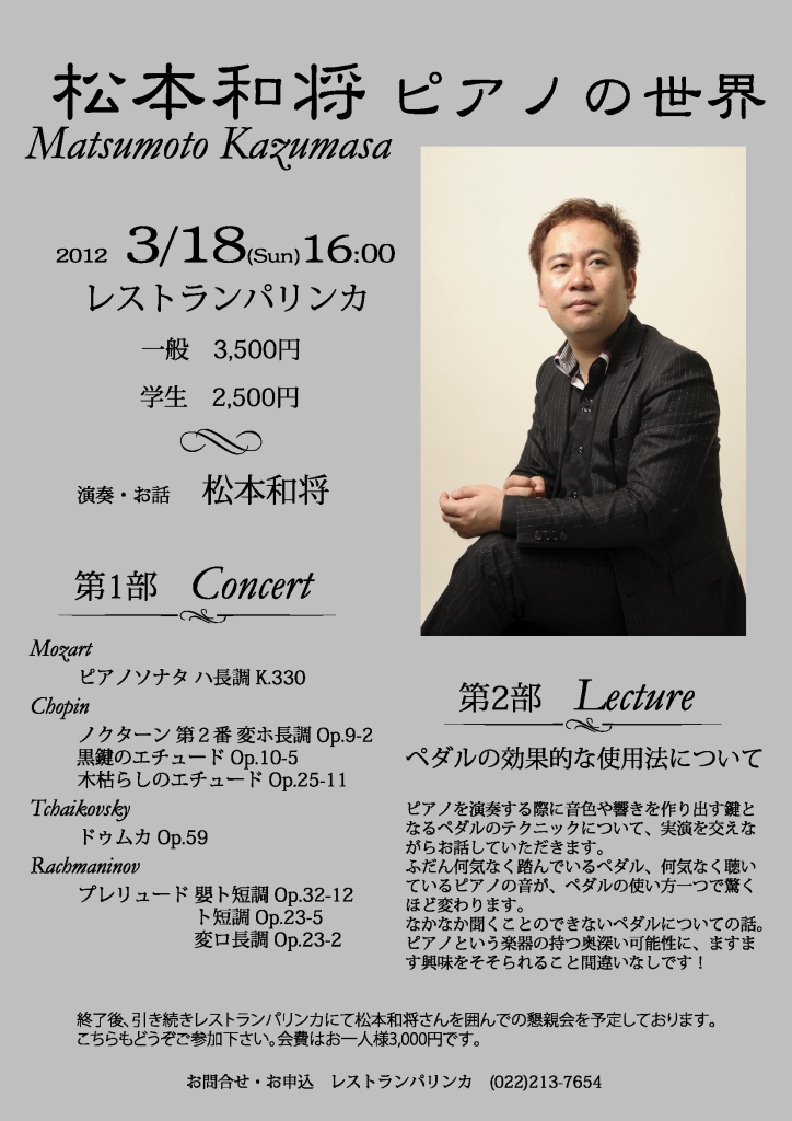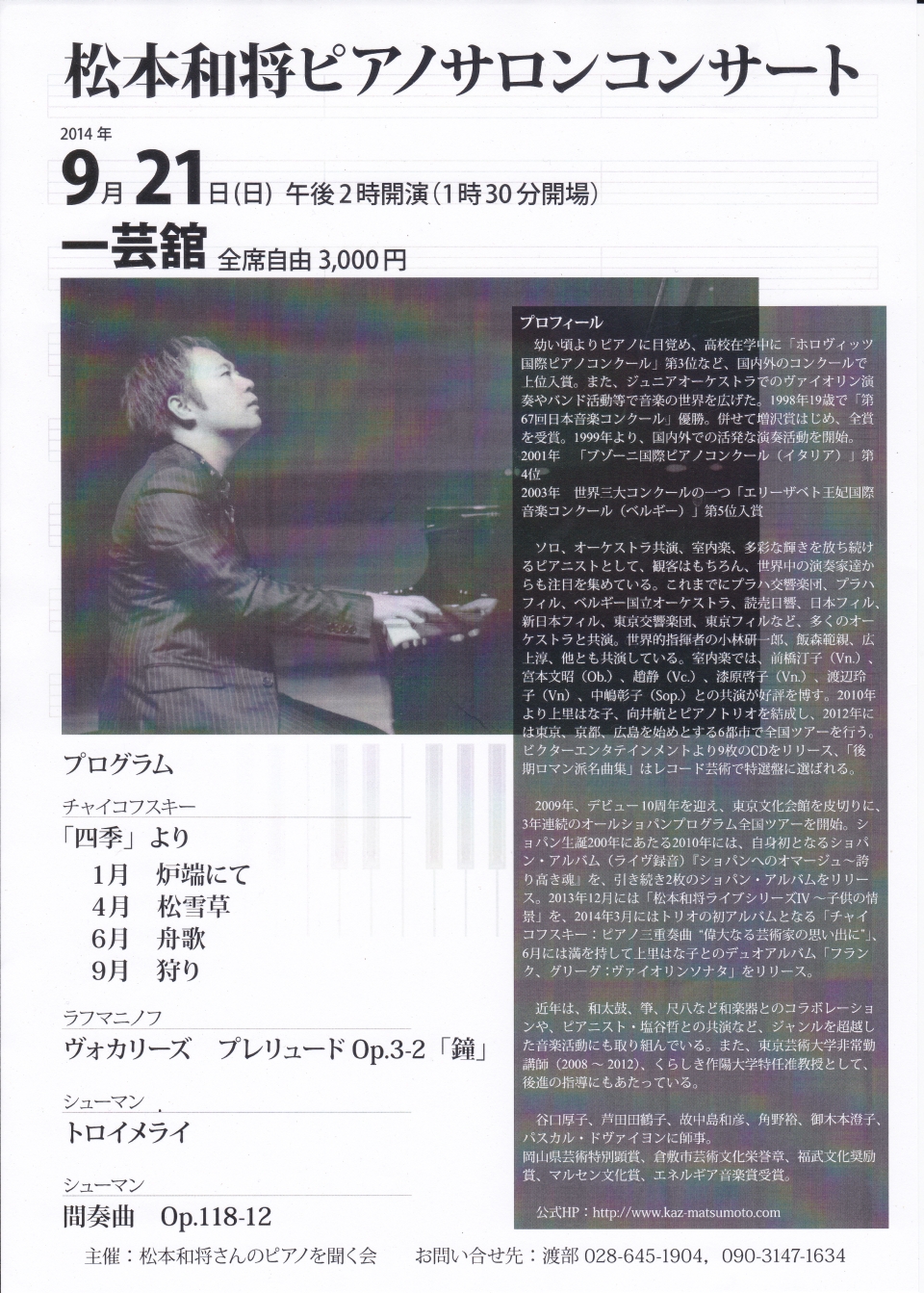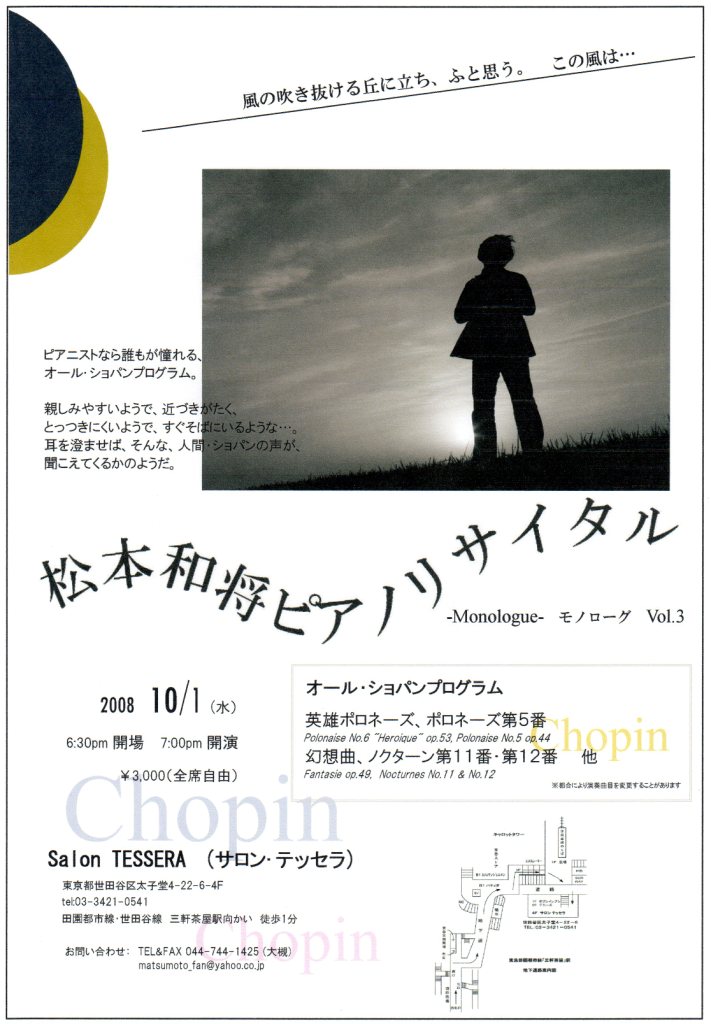 - 松本和将ピアノリサイタル Monologue Vol.3 ――完売――