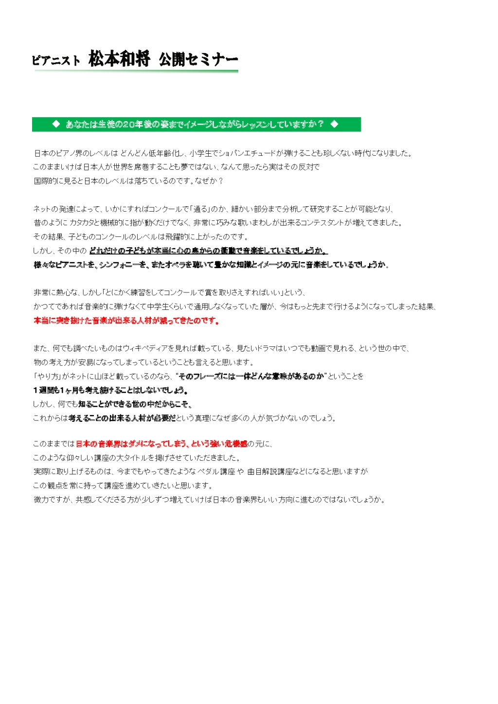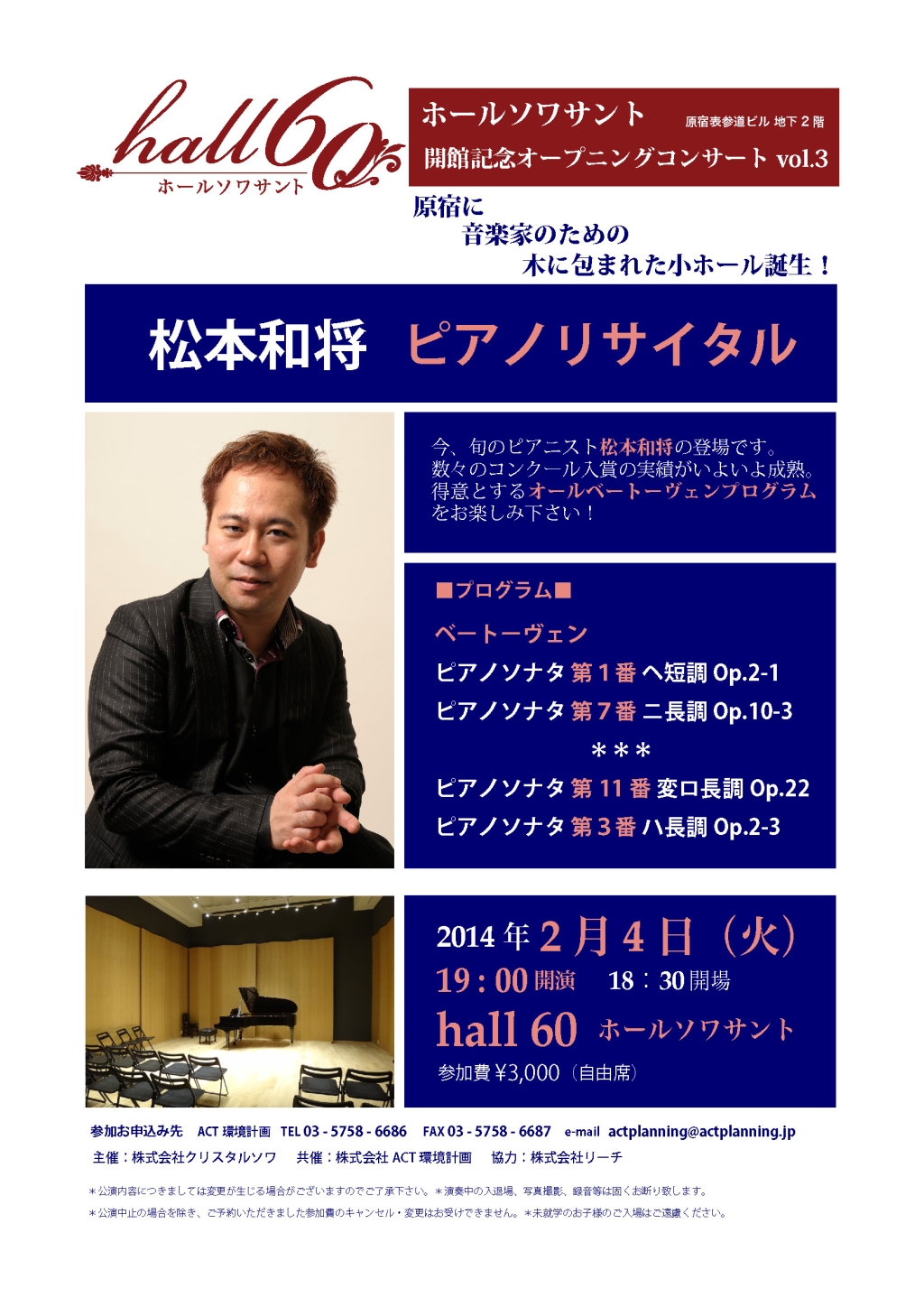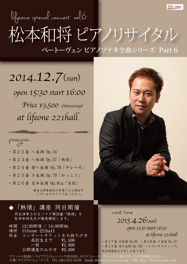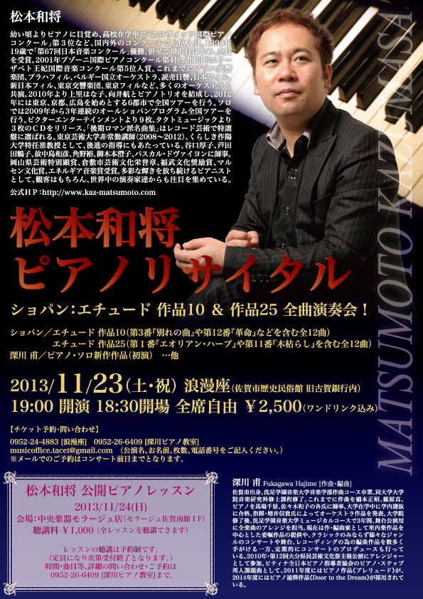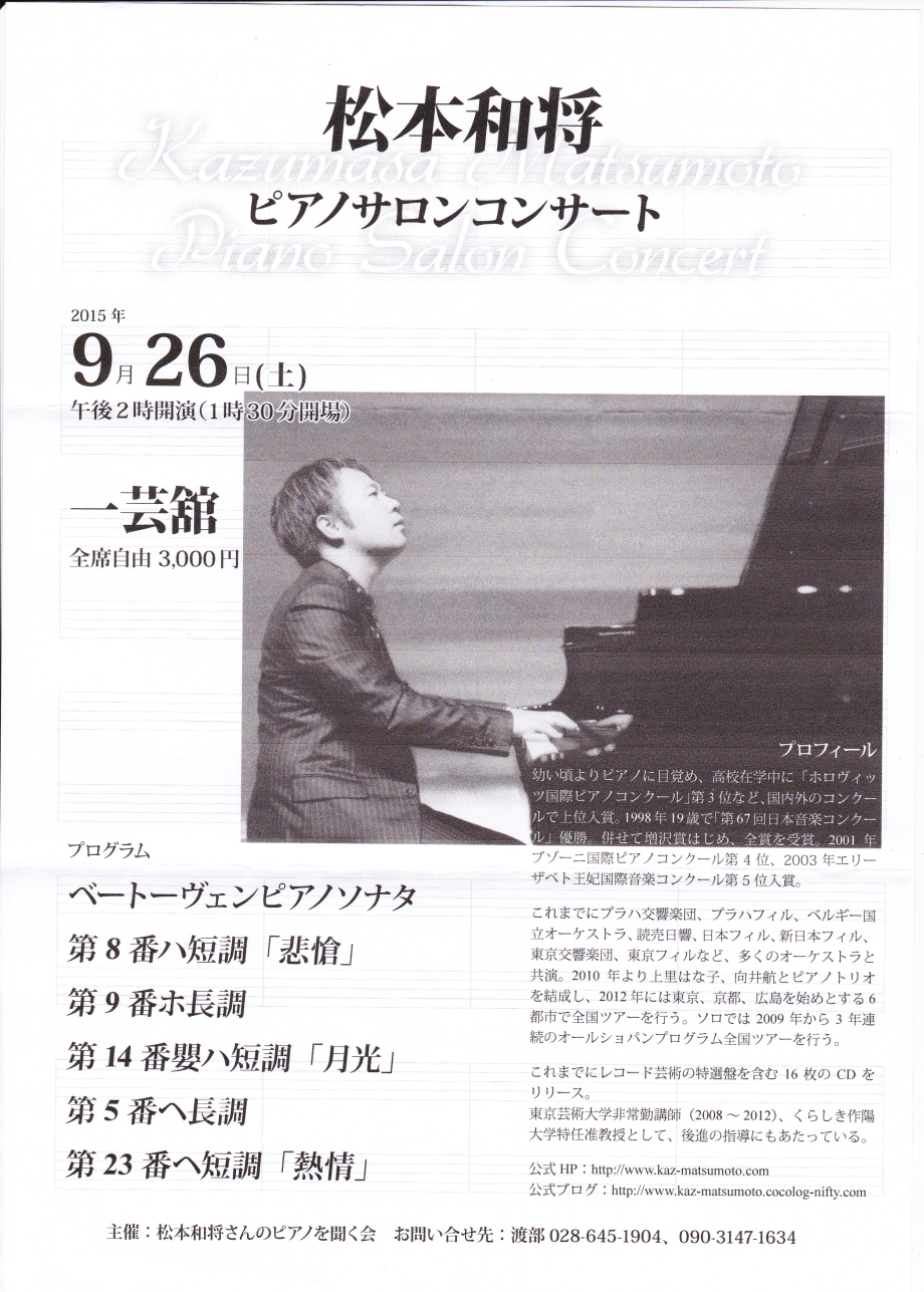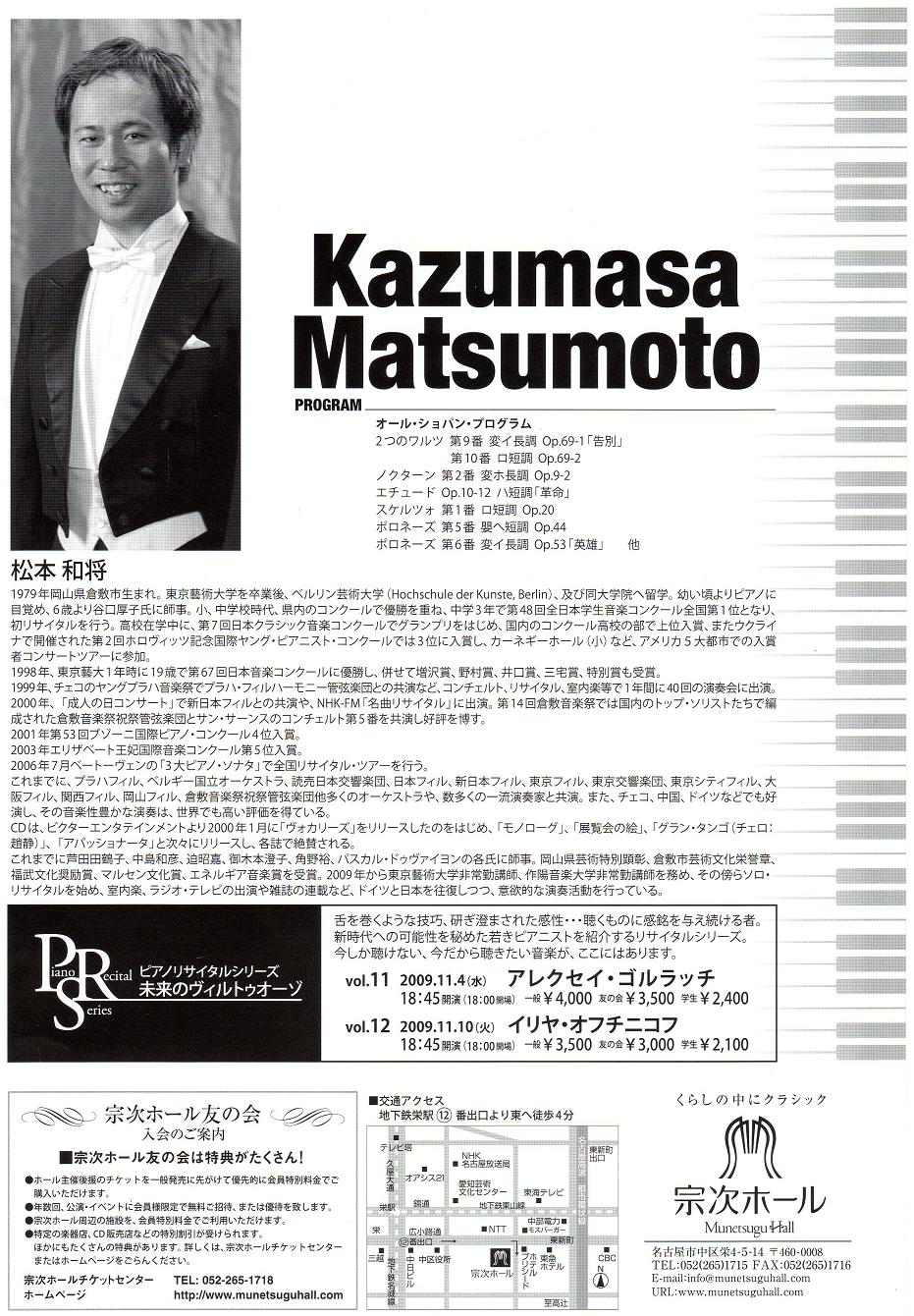 - 松本和将ピアノリサイタル Monologue Vol.3 ――完売――