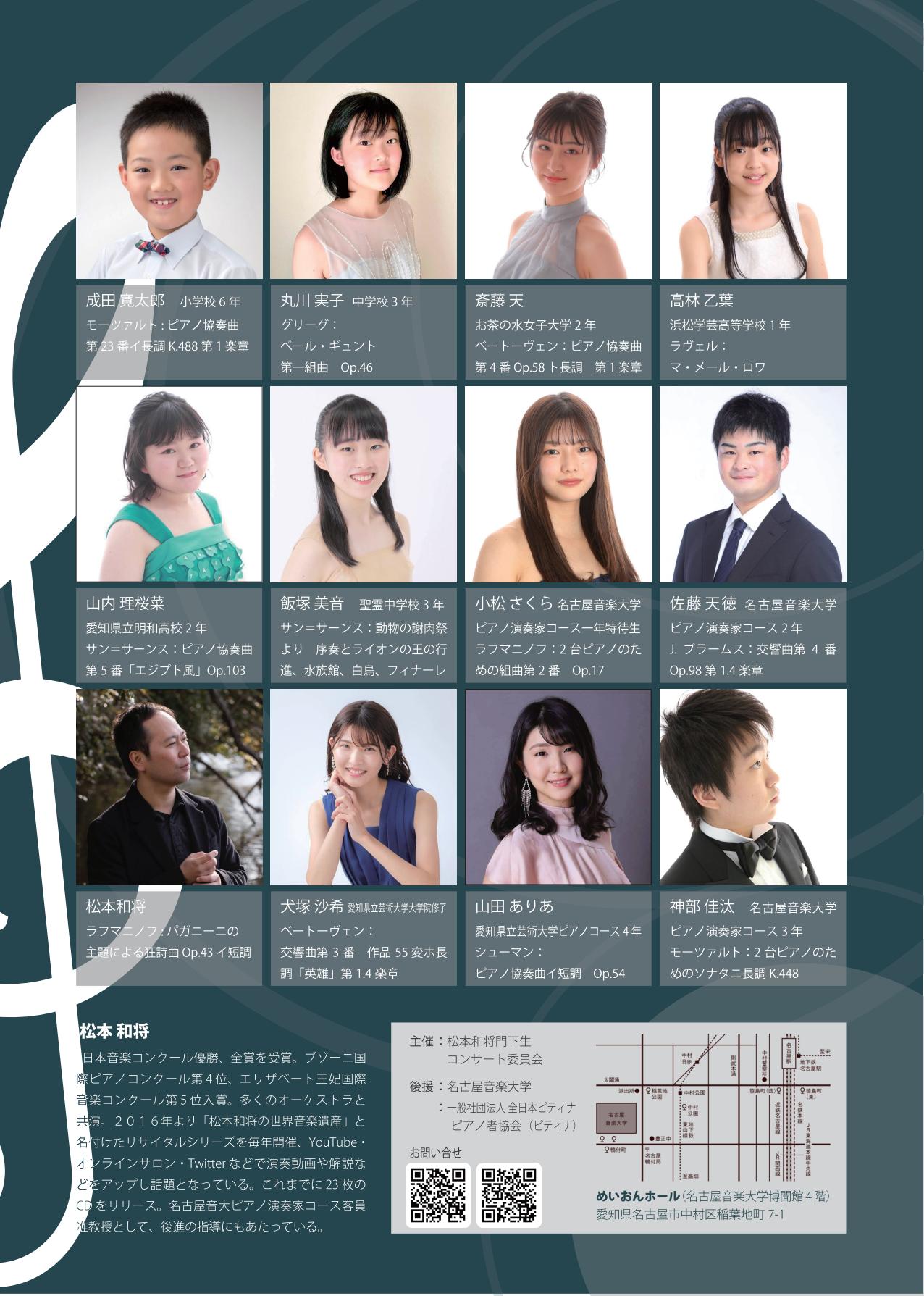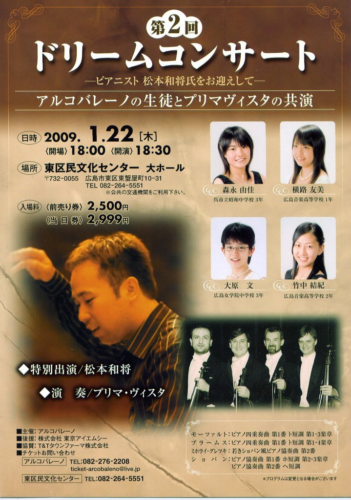 - 第2回ドリームコンサート ~ピアニスト松本和将氏をお迎えして~アルコバレーノ在学生とプリマヴィスタの共演