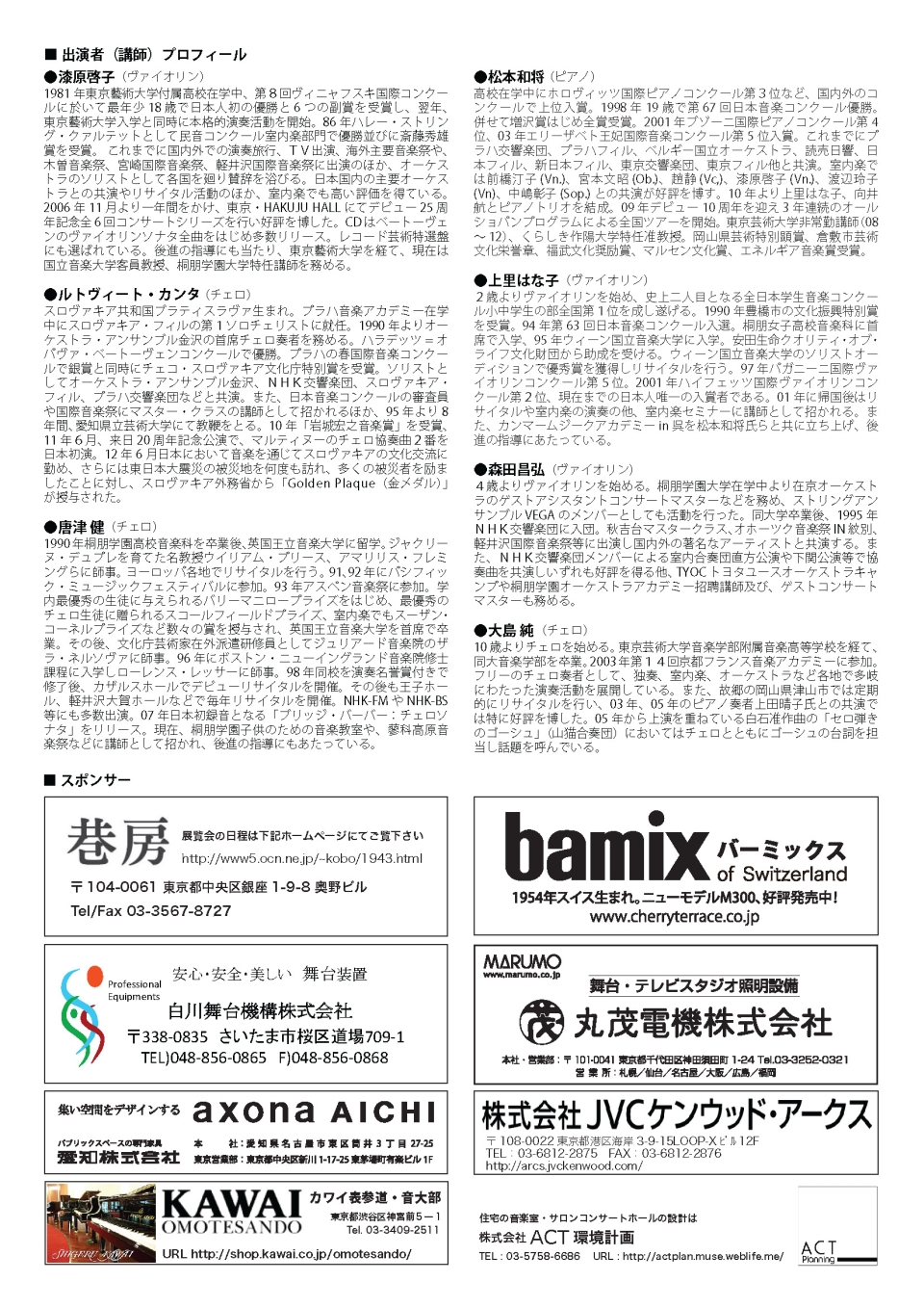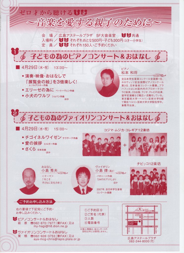 - 第6回 若い芽のためのHIROSHIMA MUSIC FESTIVAL子どもの為のコンサート