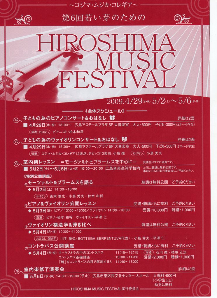 - 第5回 若い芽のためのHIROSHIMA MUSIC FESTIVAL