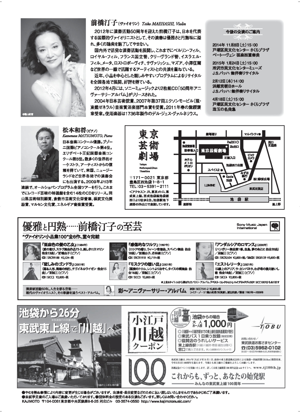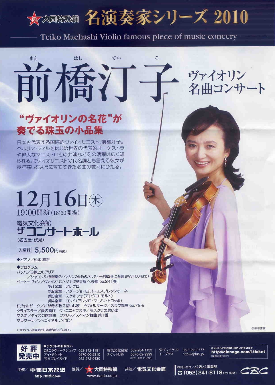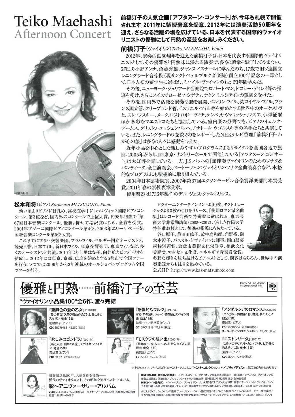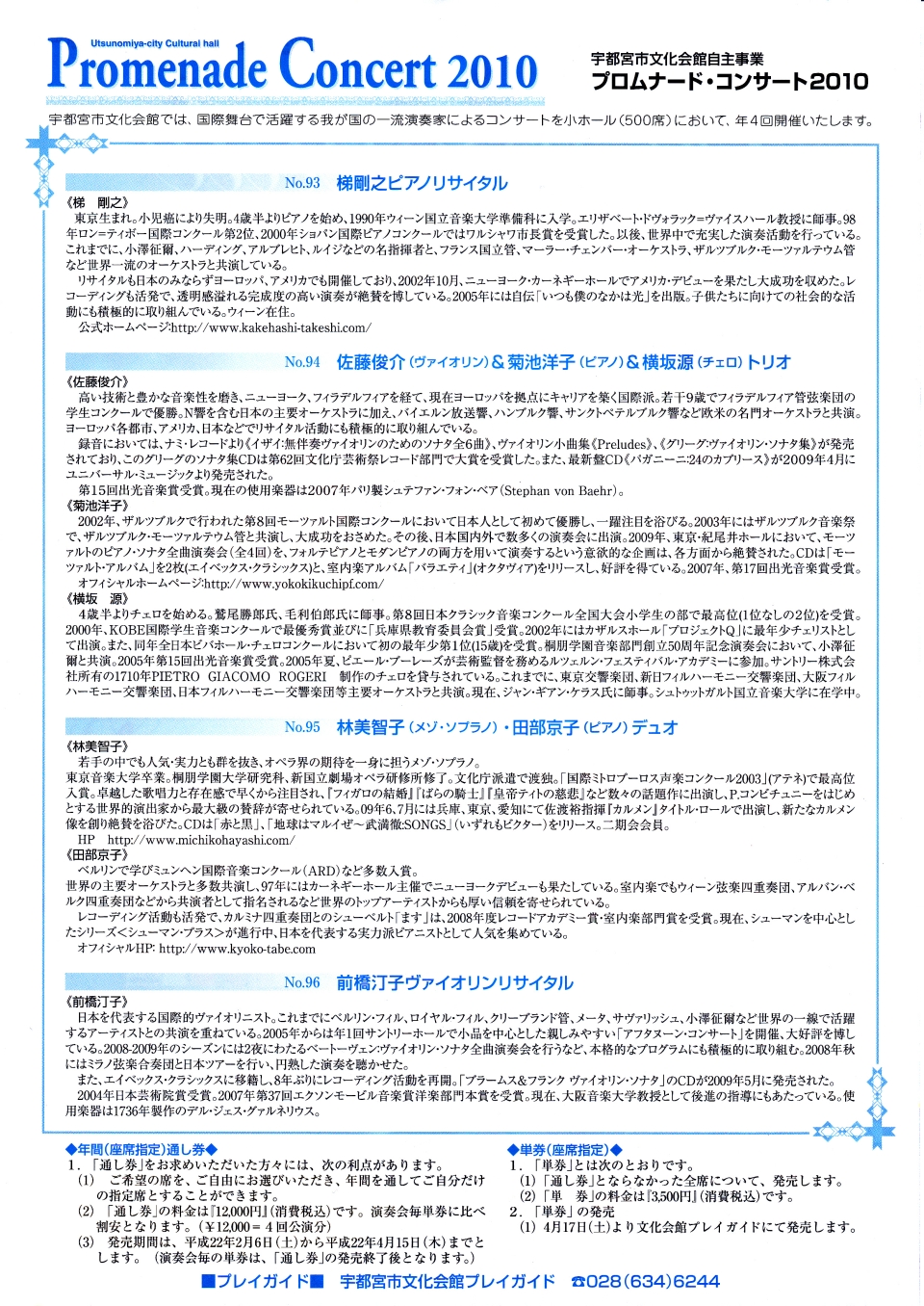 - 前橋汀子ベートーヴェンヴァイオリンソナタ全曲演奏会
