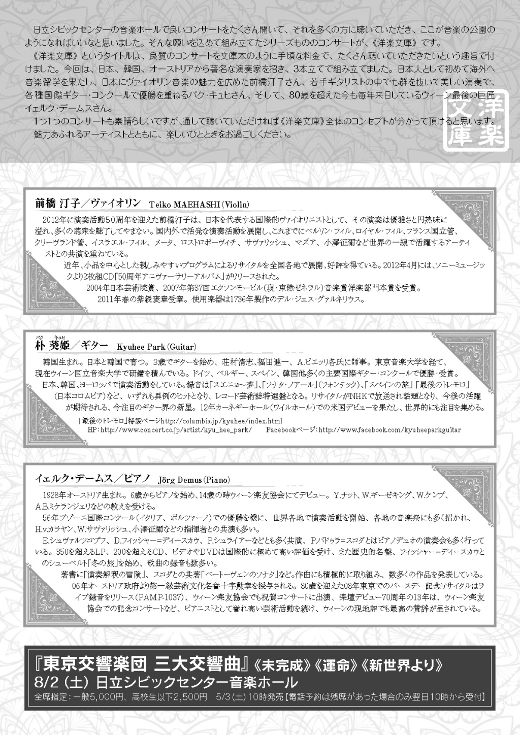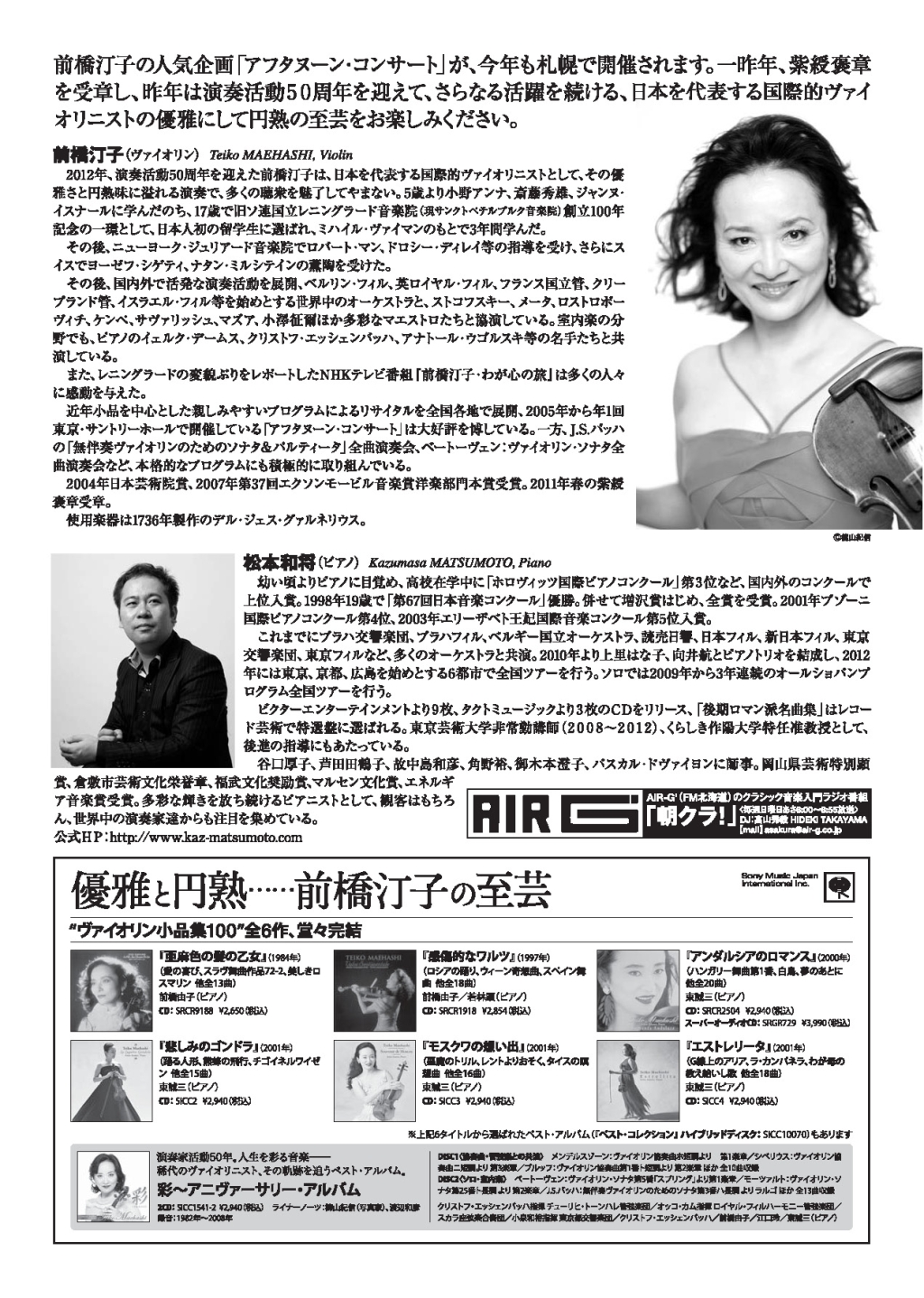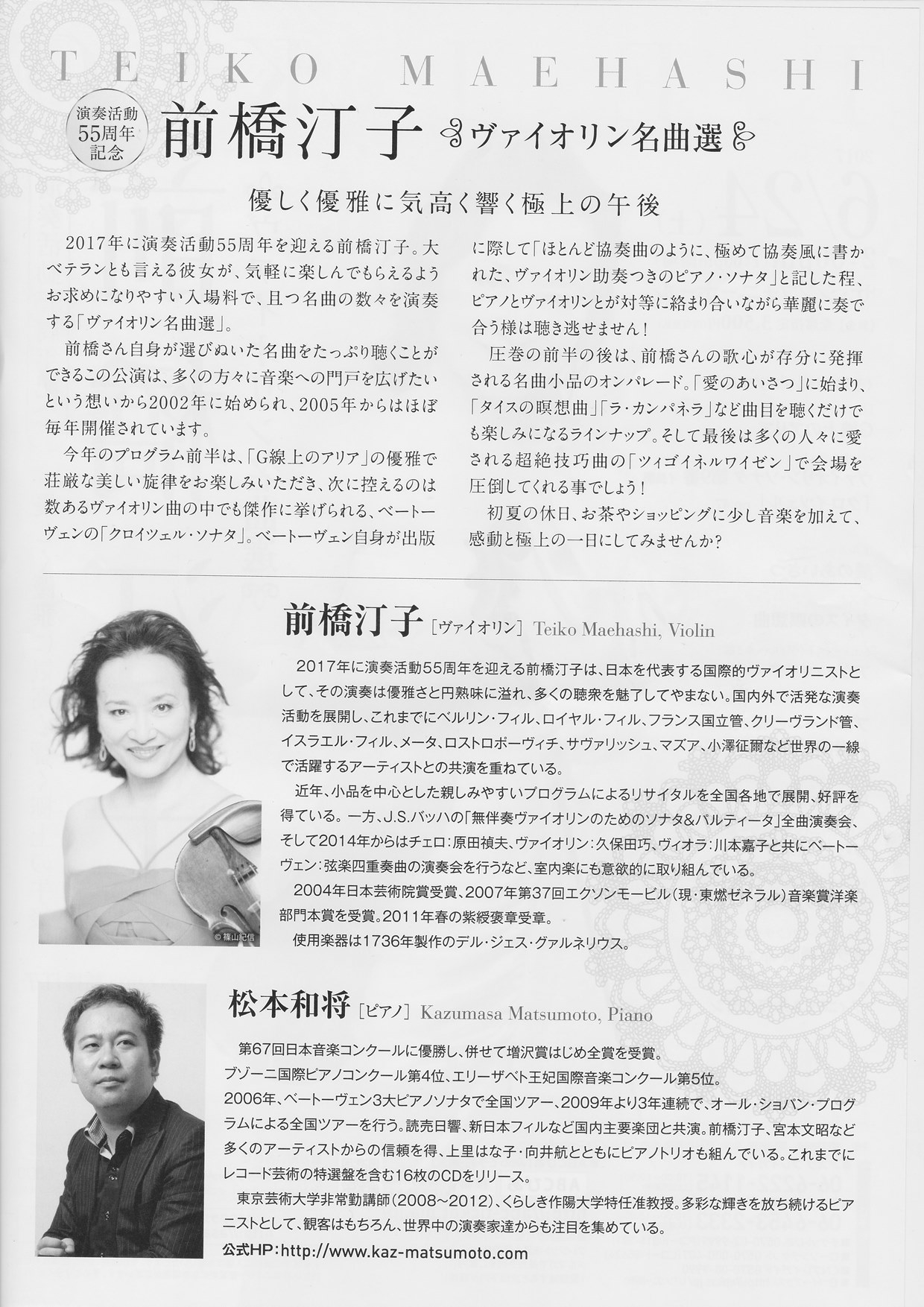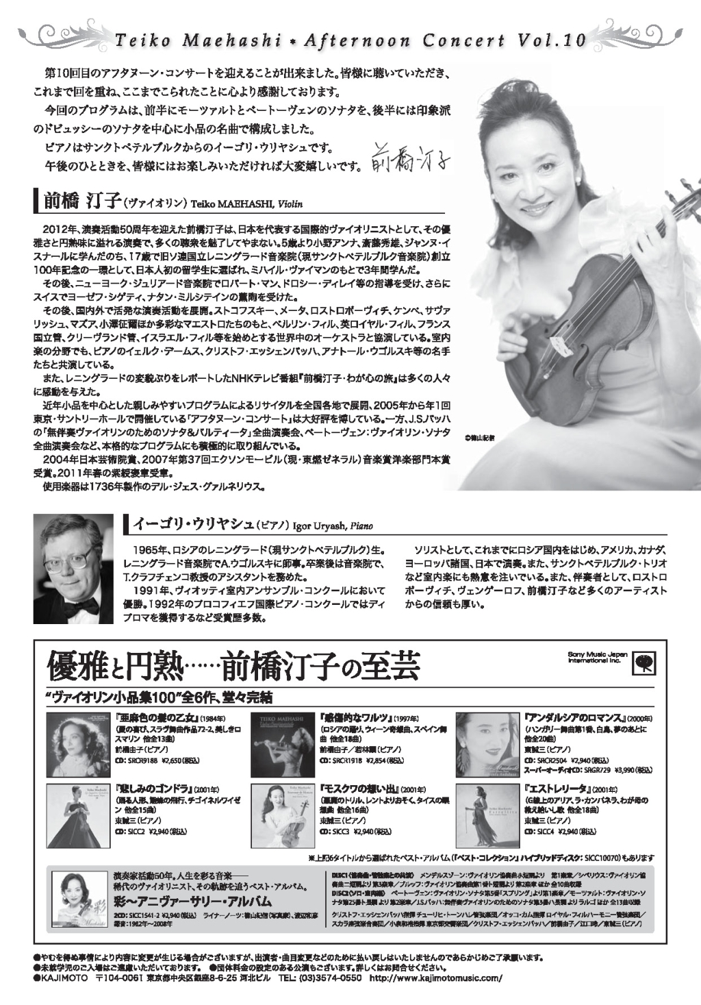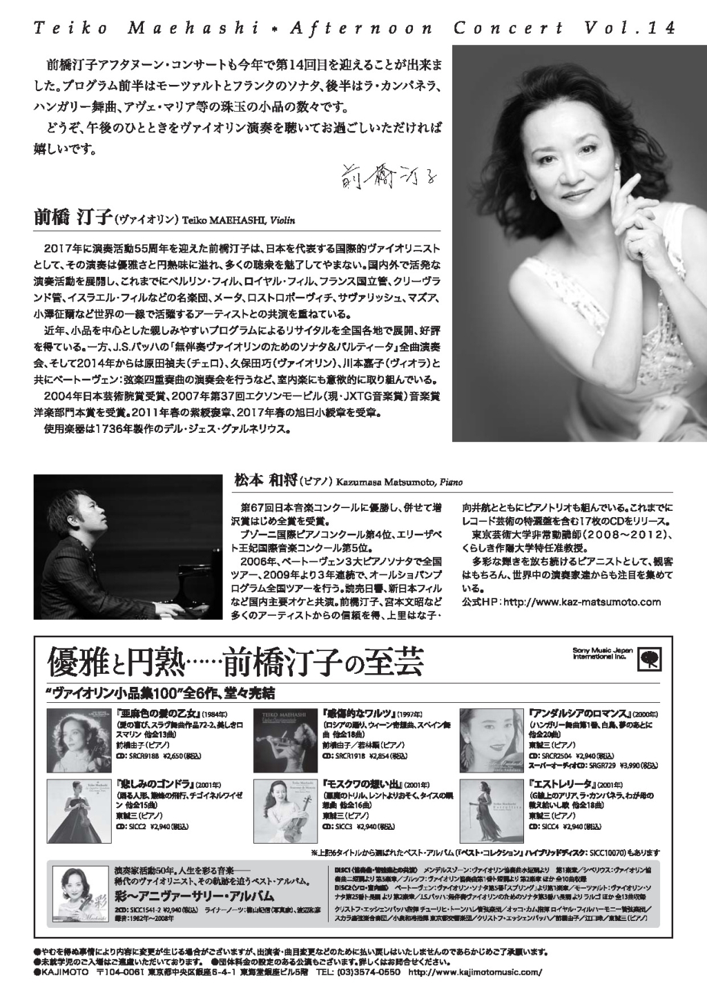- 前橋汀子ベートーヴェンヴァイオリンソナタ全曲演奏会