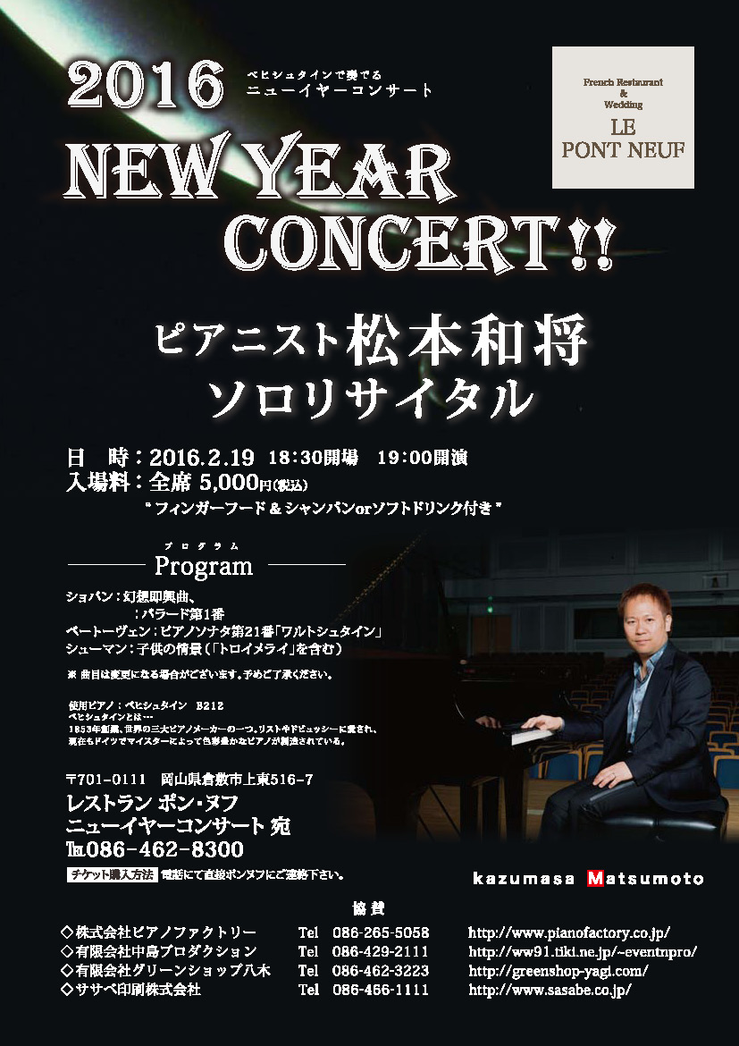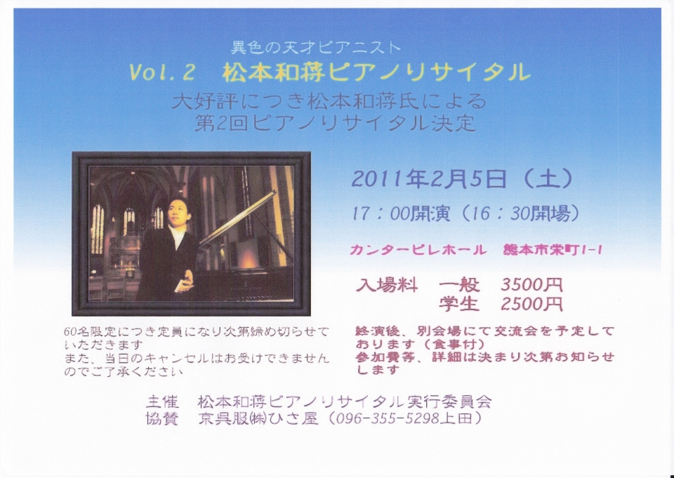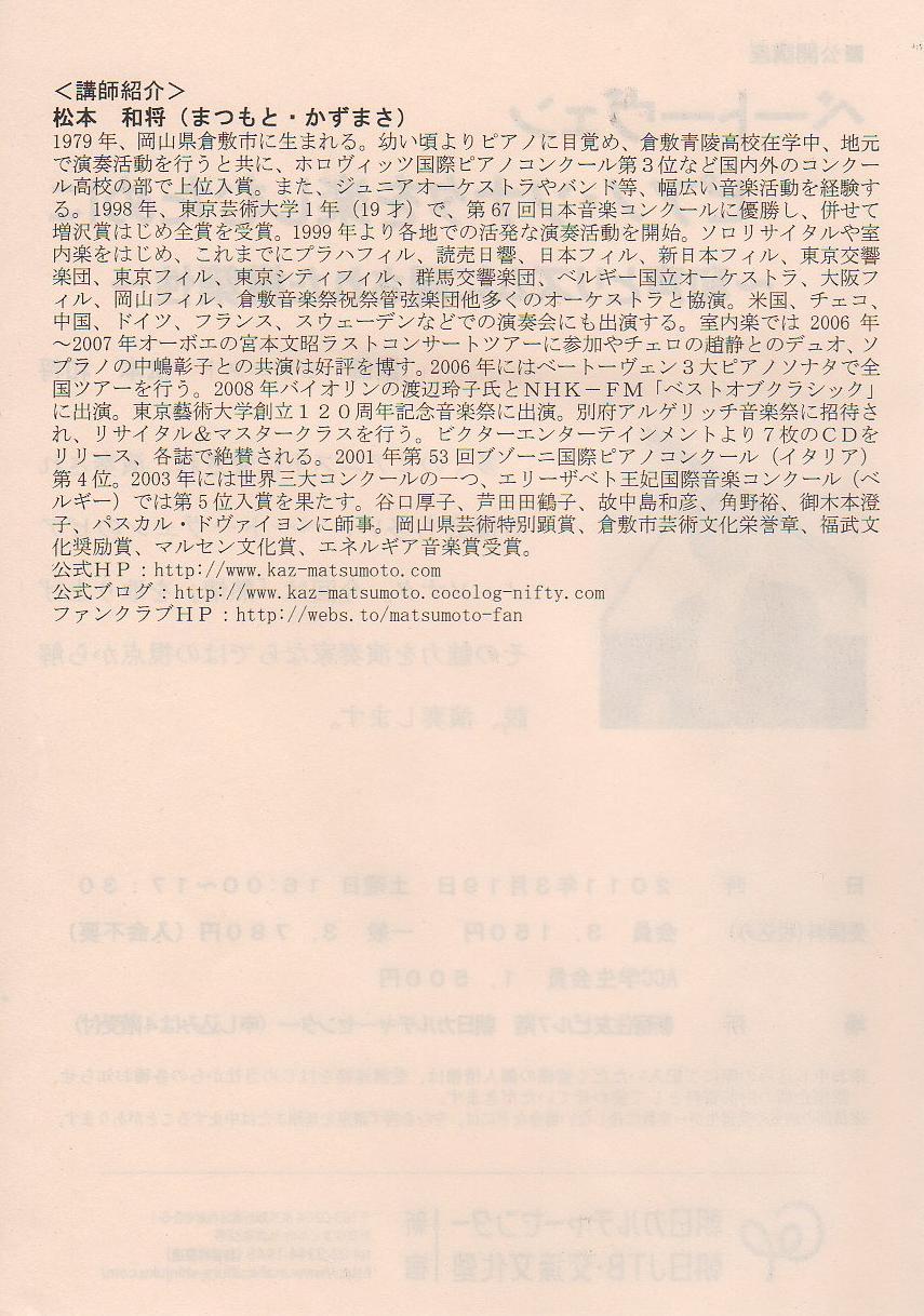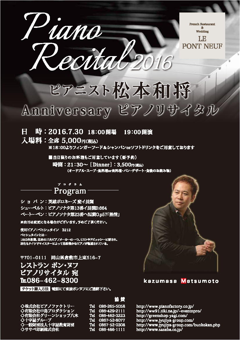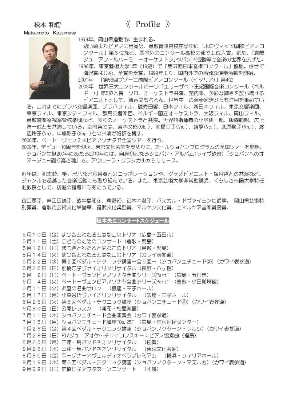 - 松本和将ピアノリサイタル~Christchurch Cityー倉敷市姉妹都市締結35周年特別イベント