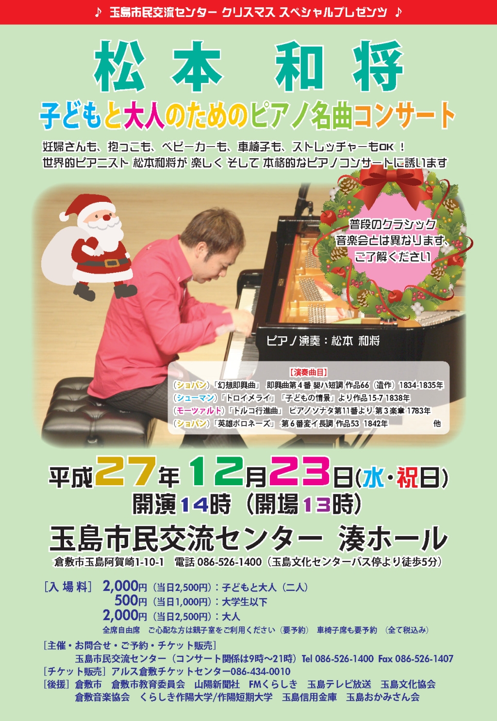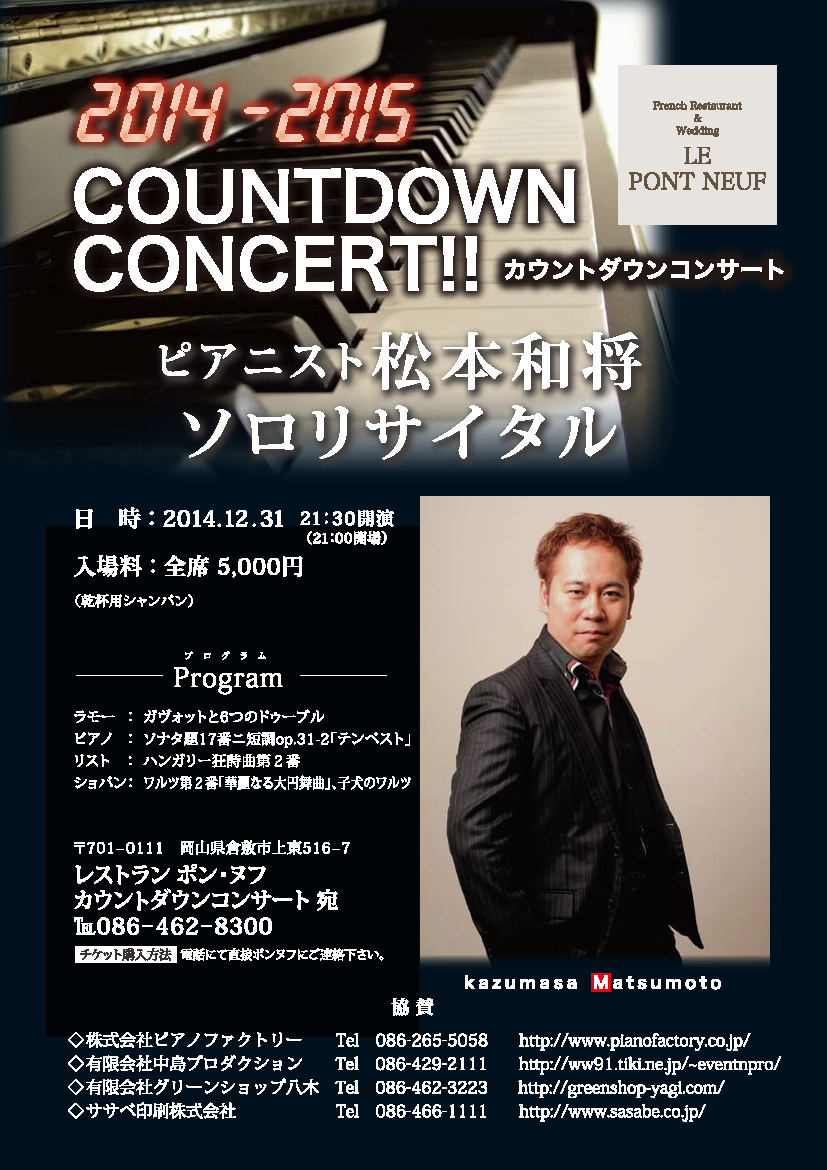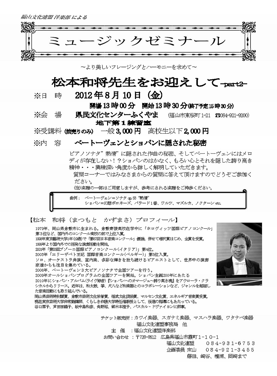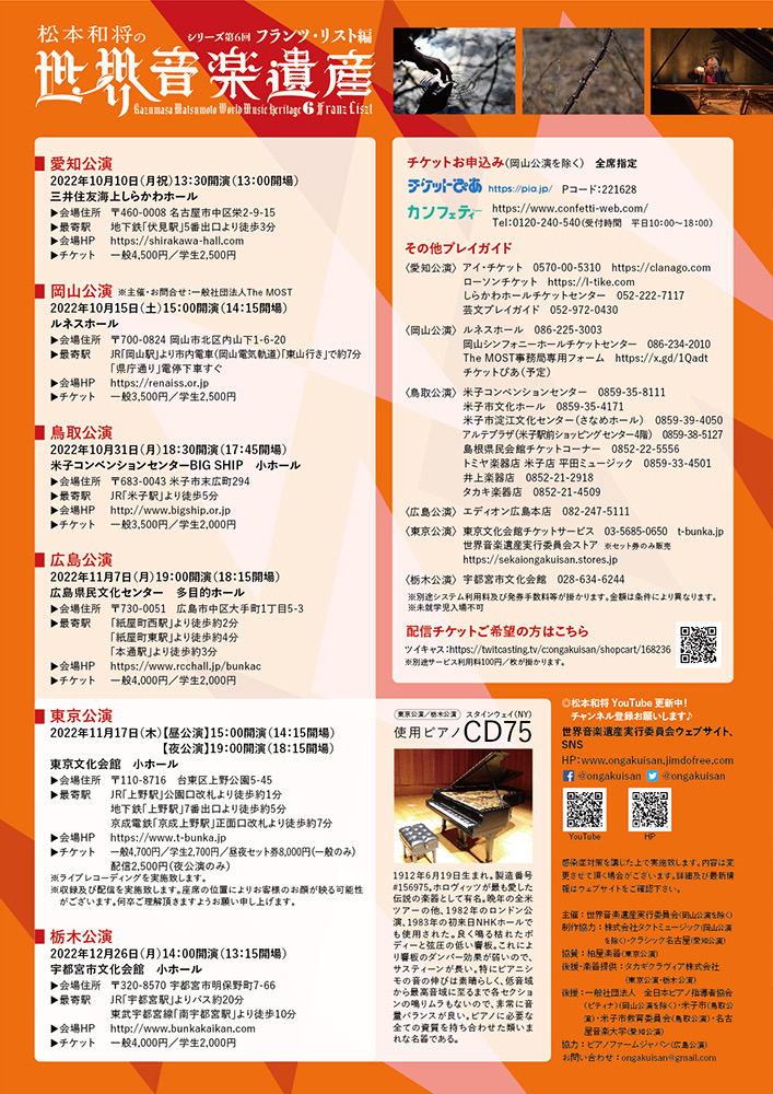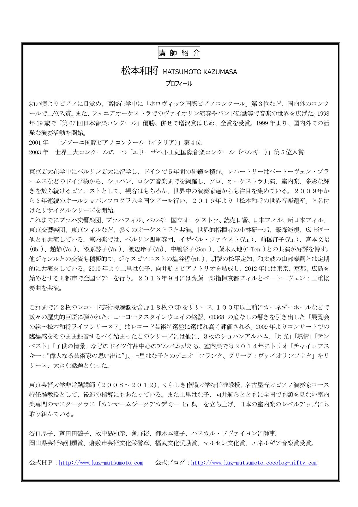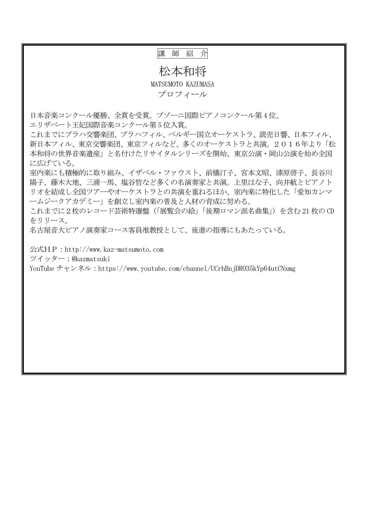 - 松本和将ピアノリサイタル~Christchurch Cityー倉敷市姉妹都市締結35周年特別イベント