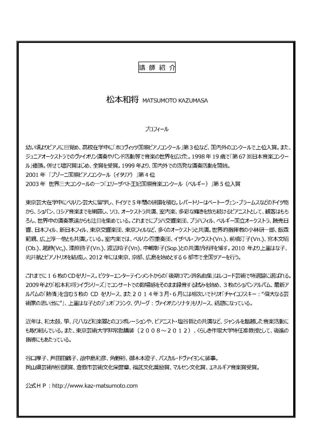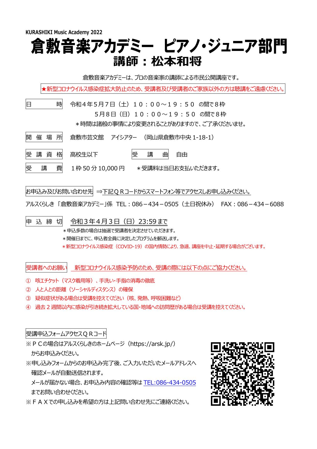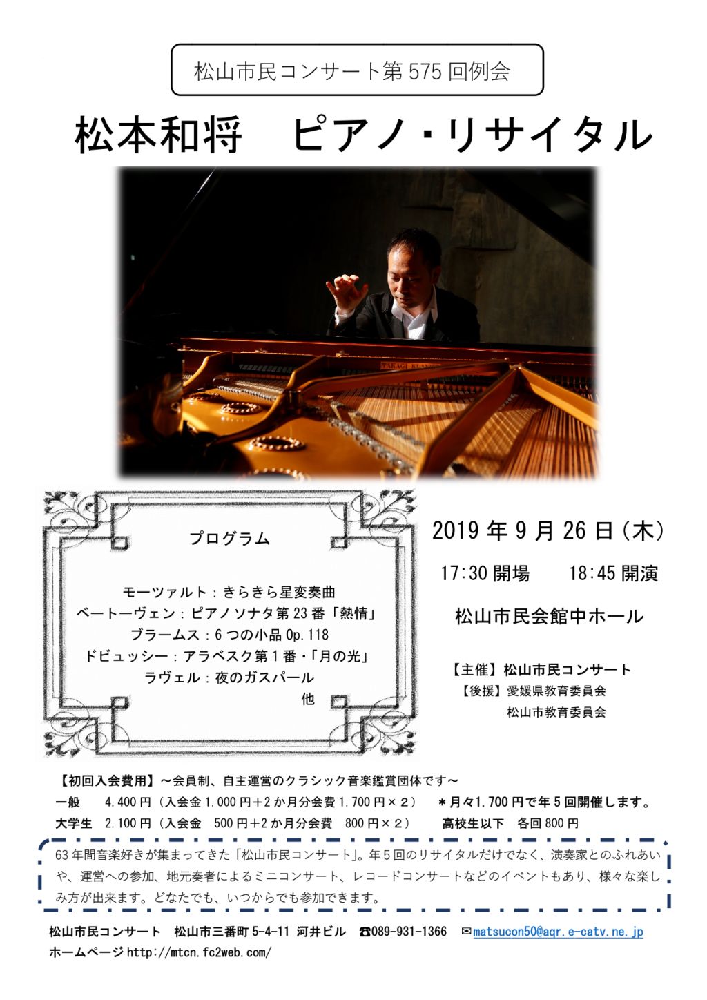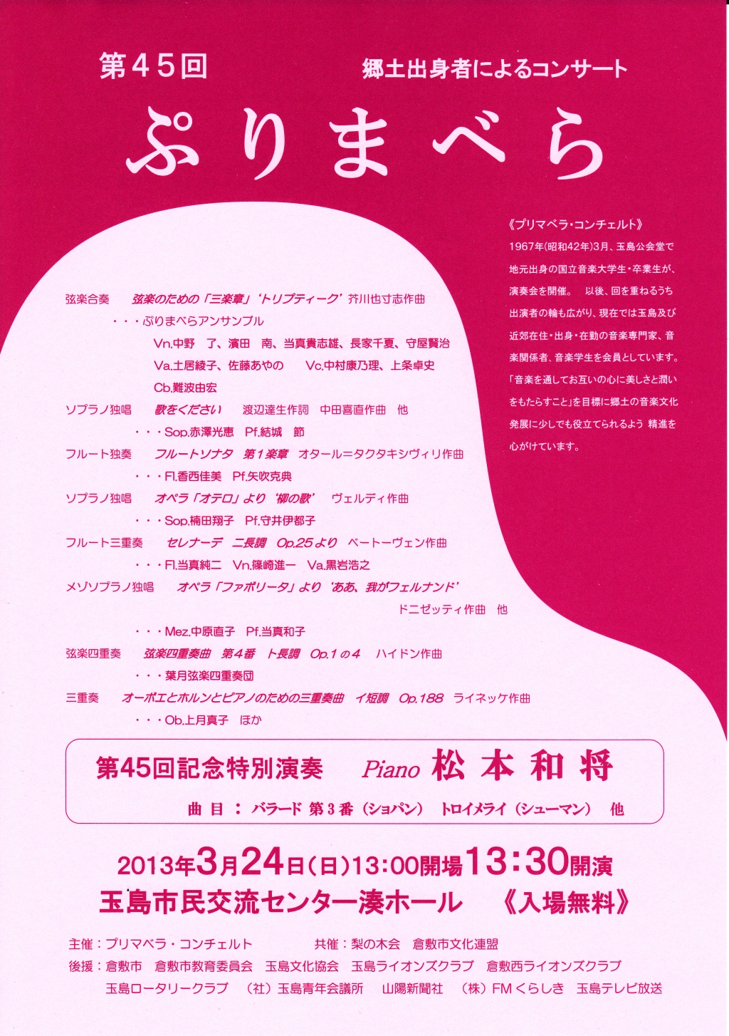 - 松本和将ピアノリサイタル~Christchurch Cityー倉敷市姉妹都市締結35周年特別イベント