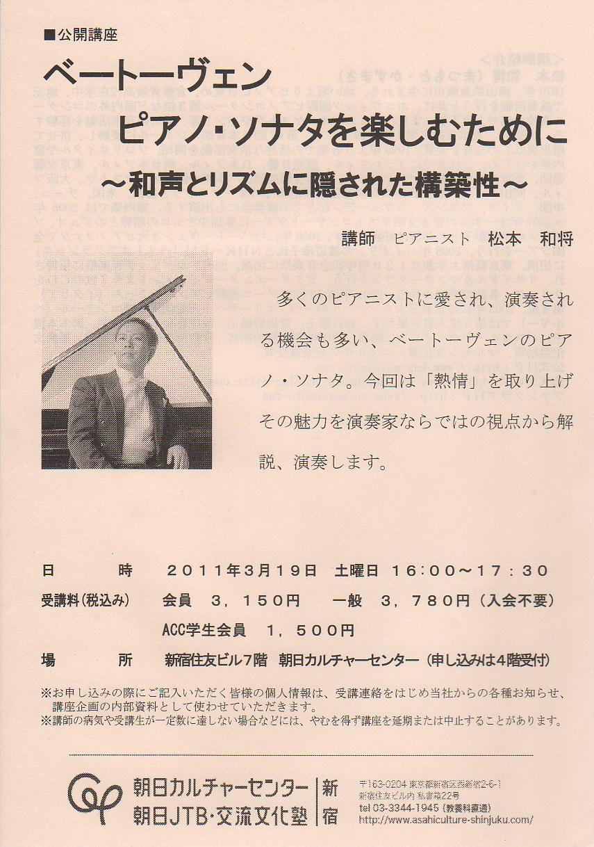 - 朝日カルチャーセンター新宿 公開講座ベートーヴェン「らしさ」とはなにか