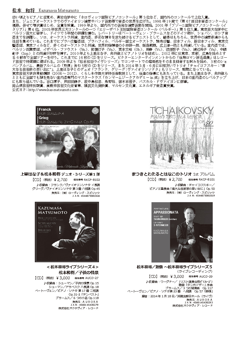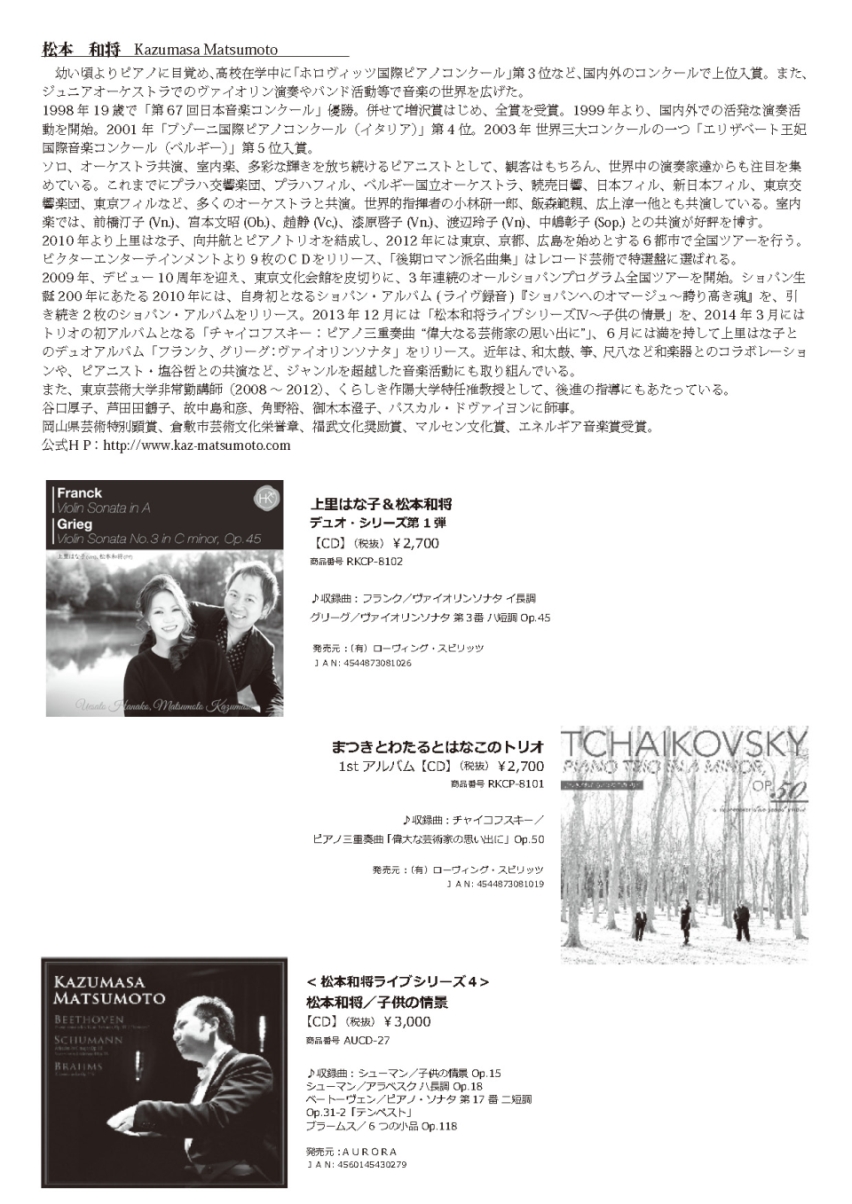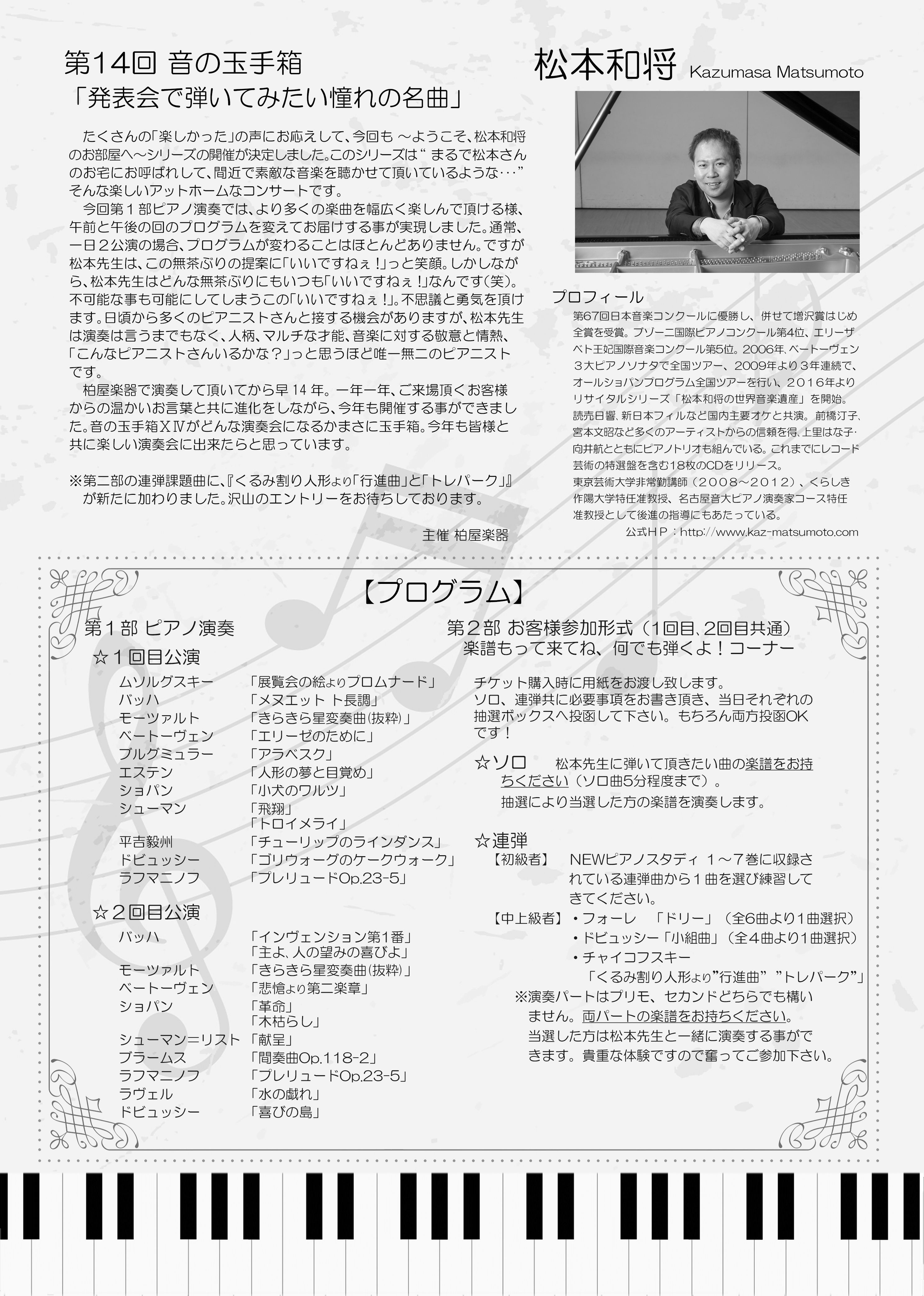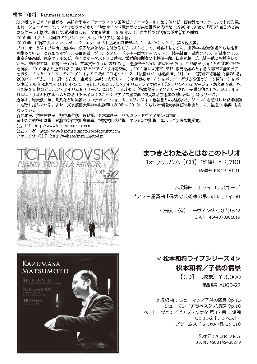 - 松本和将ピアノリサイタル Monologue Vol.2 ――完売――
