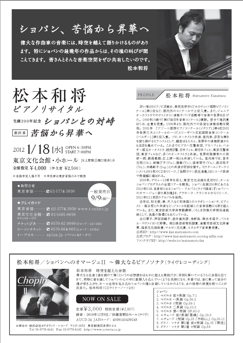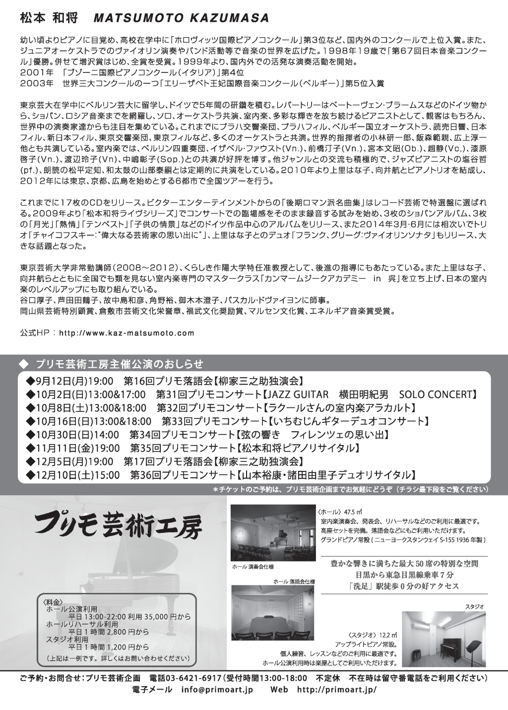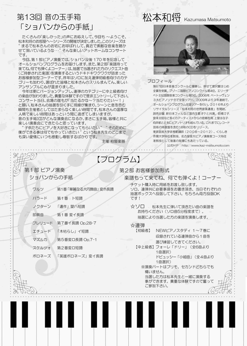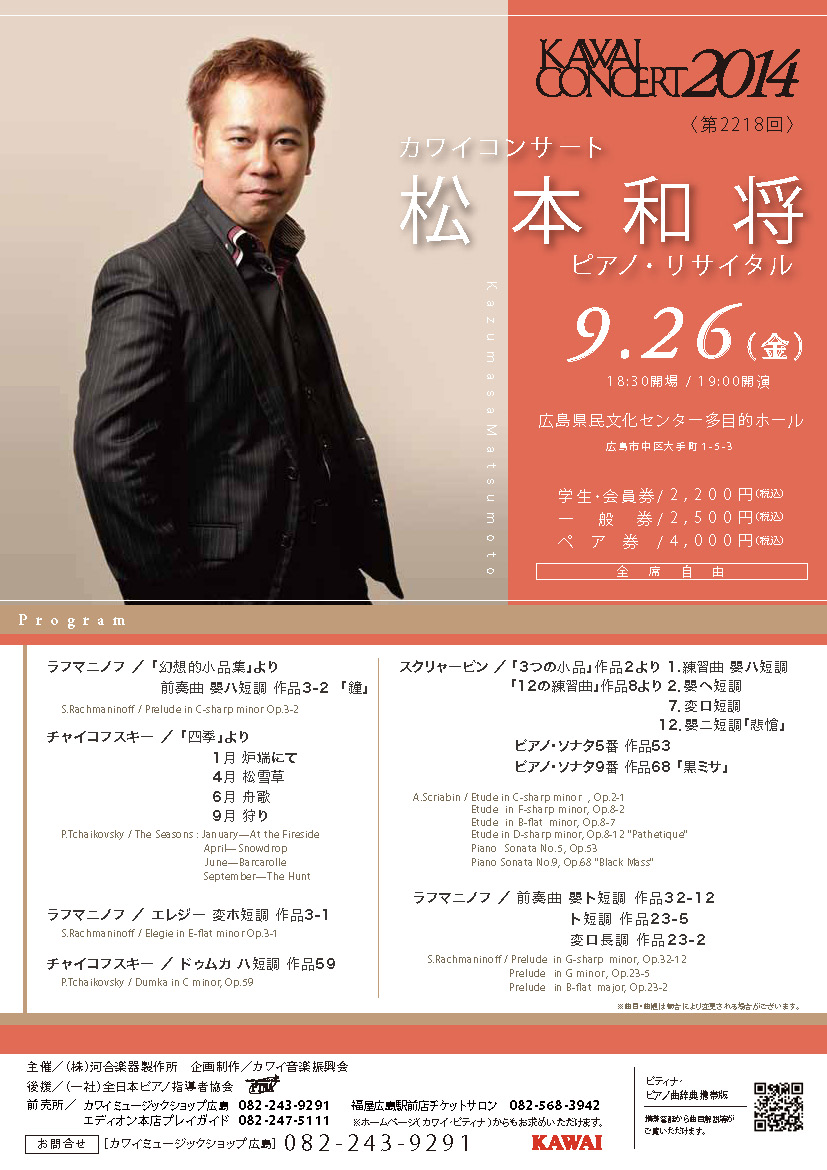 - 松本和将ピアノリサイタル Monologue Vol.2 ――完売――