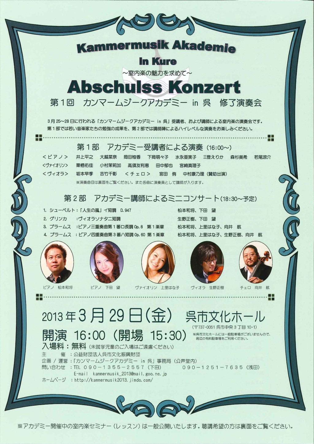 修了演奏会:4月1日 - 時間: