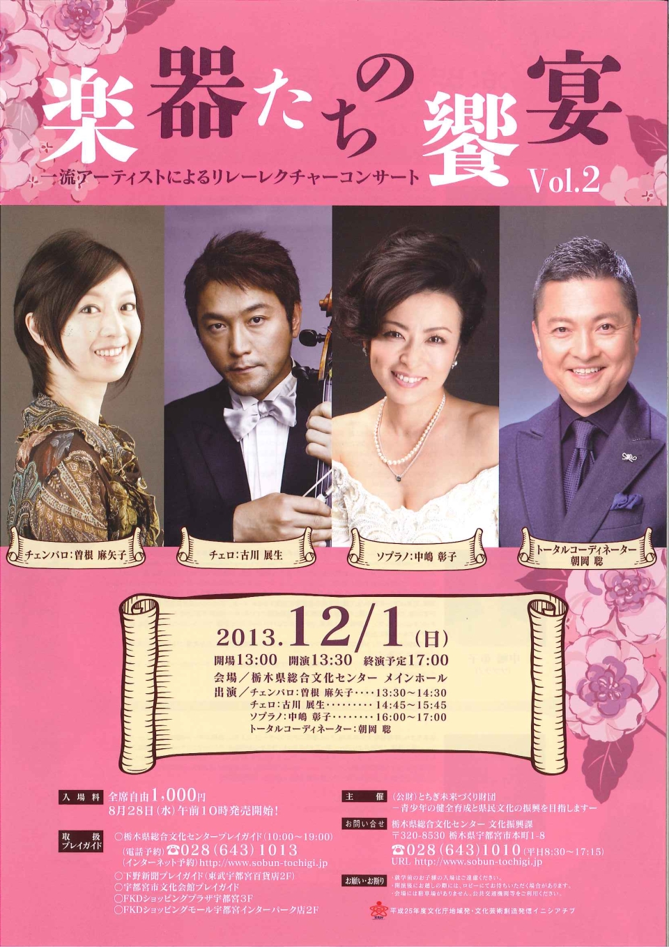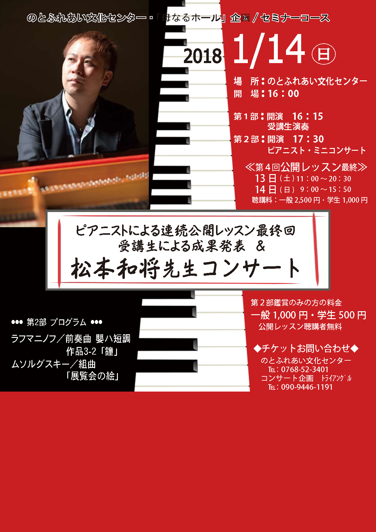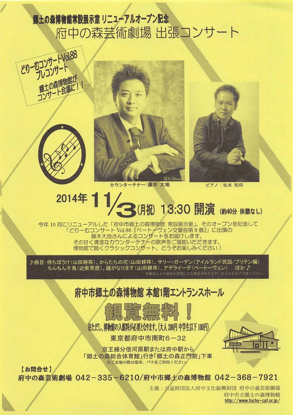 - 14:00 開演(13:30開場)