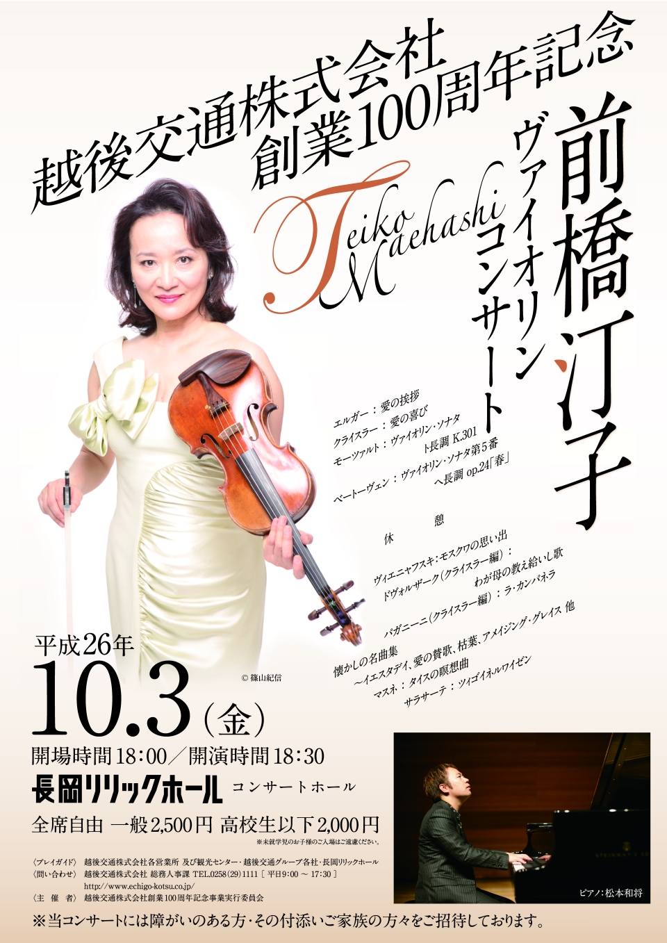 - 中嶋彰子ソプラノ・リサイタル貴志康一生誕100周年記念~時を越えて~