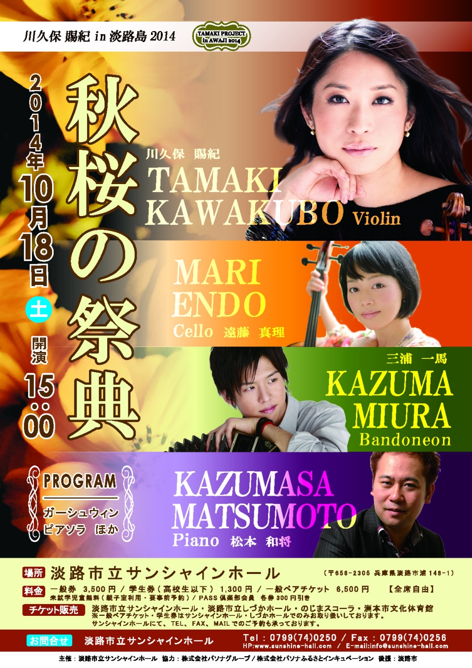 - 15:00 開演(14:00開場)