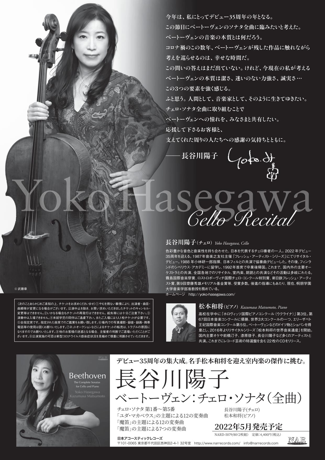 - 長谷川陽子ベートーヴェンチェロ・ソナタ全曲演奏会